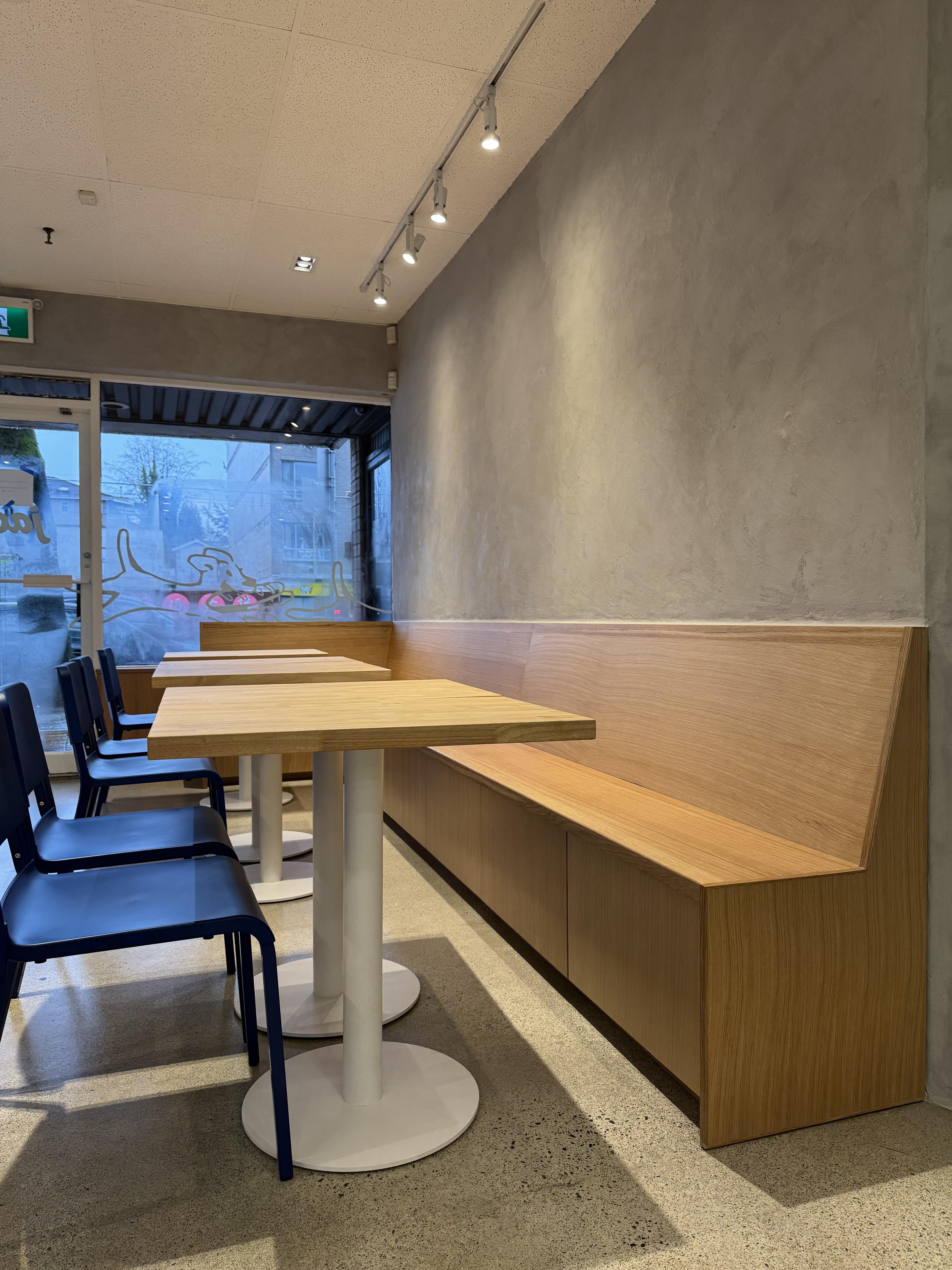 This project involved the interior build-out of a 1,115 sq. ft. café and bakery space in Vancouver. The objective was to transform an existing commercial unit into a fully operational food-service environment within a defined lease timeline.